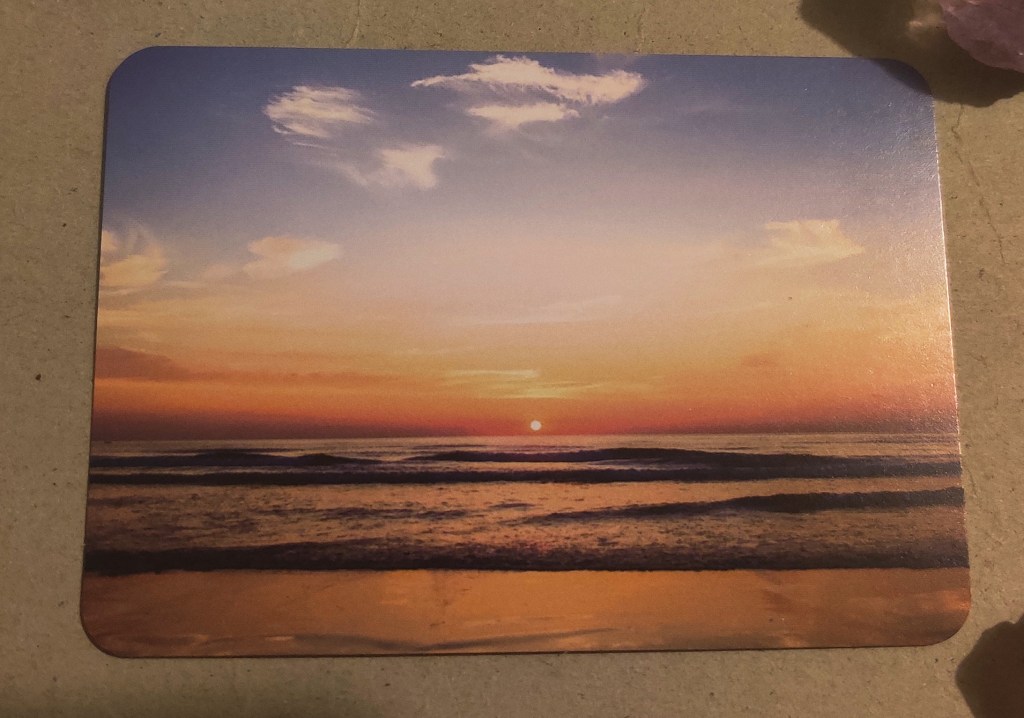 La segunda carta fue la imagen de un amanecer en una playa, donde se puede apreciar el sol dando vida a las olas y levantando su brillantez a un nuevo día. La palabra en esta carta fue Cálido.